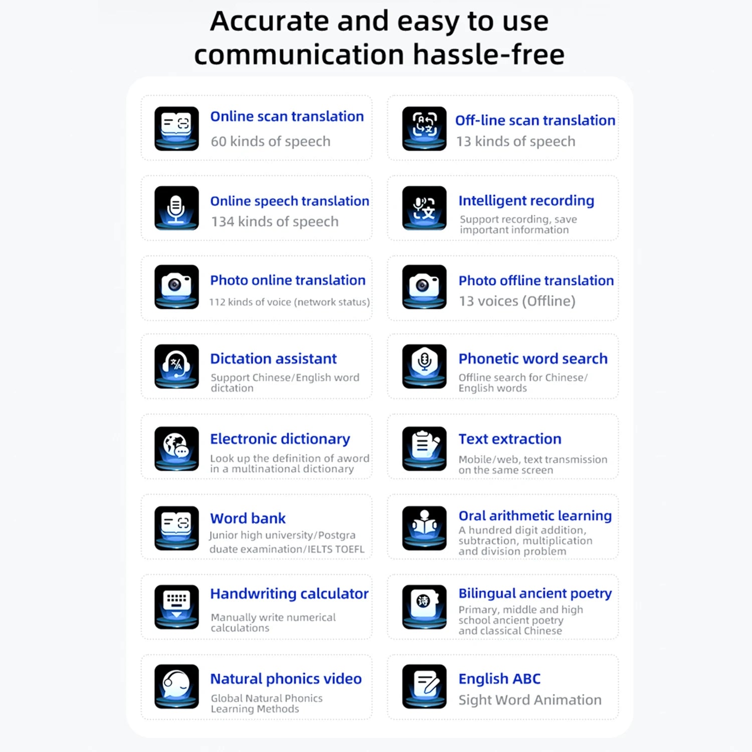 * High Accuracy銆�: The translation pen supports offline, online scanning and mutual translation of 12 languages, with powerful Language recognition ability and accuracy rate up to 99%.